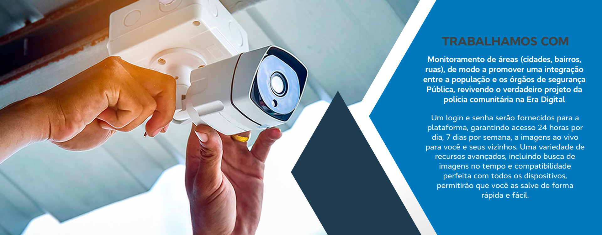 Nosso sistema de monitoramento funciona totalmente na nuvem, e os moradores ficam encarregados de fornecerem os sinais de internet de suas residências. Nossa equipe instala e posiciona as câmeras para otimizar o monitoramento, viabilizando uma melhor eficiência e segurança.